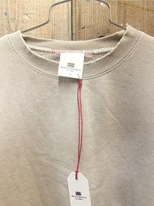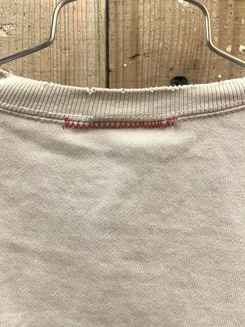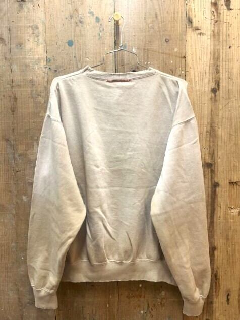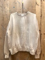オリジナルのシンプルなクルーネックのスウェットに、大胆なエイジド(経年変化)加工が施されています。