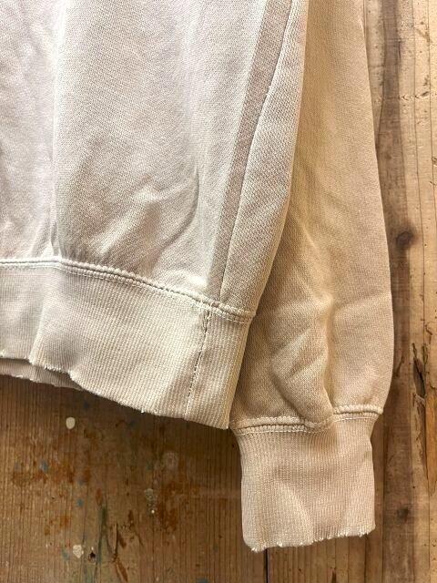 部分的なサンフェード(日焼け)、そしてネック、裾、袖口のリブはダメージ仕上げとなります。