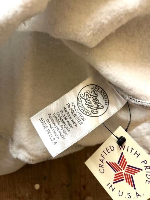 LAの縫製工場を使い、見頃の左サイド裾にMade In USA のオリジナルピスネーム付きです。