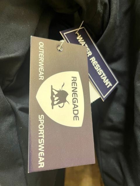 スライダーに「RENEGADE SPORTSWEAR」のオリジナル刻印、左サイドポケットにはピスネーム付きです。