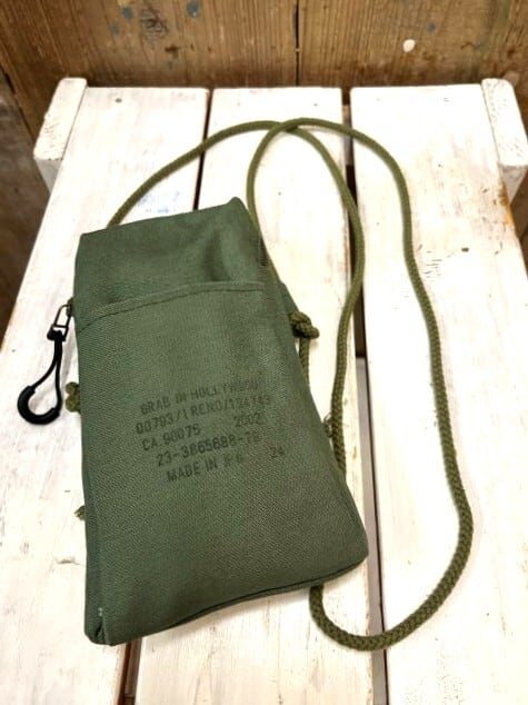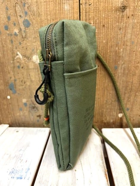 ミリタリーのランドリーバッグを解体してリメイクの上生まれ変わったサコッシュ。