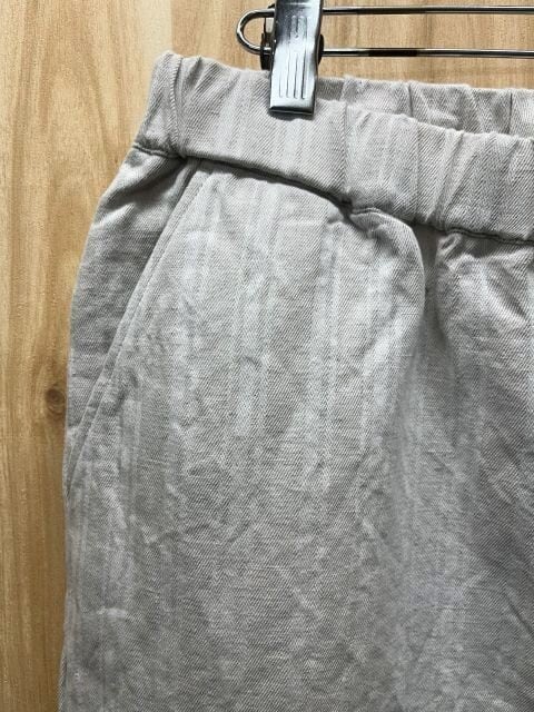 肌触りの良いコットン55%、リネン45%を混紡したストライプ柄のリラックスパンツ。