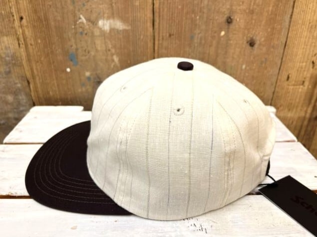 リネン混のストライプのボディとソリッドブリムのキャップです。