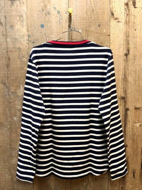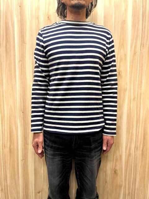 さりげないボーダーバスクシャツですが、一枚あるととても便利。