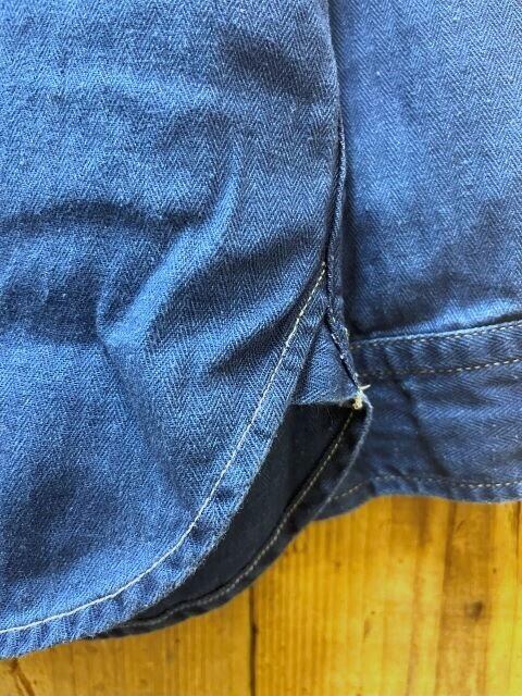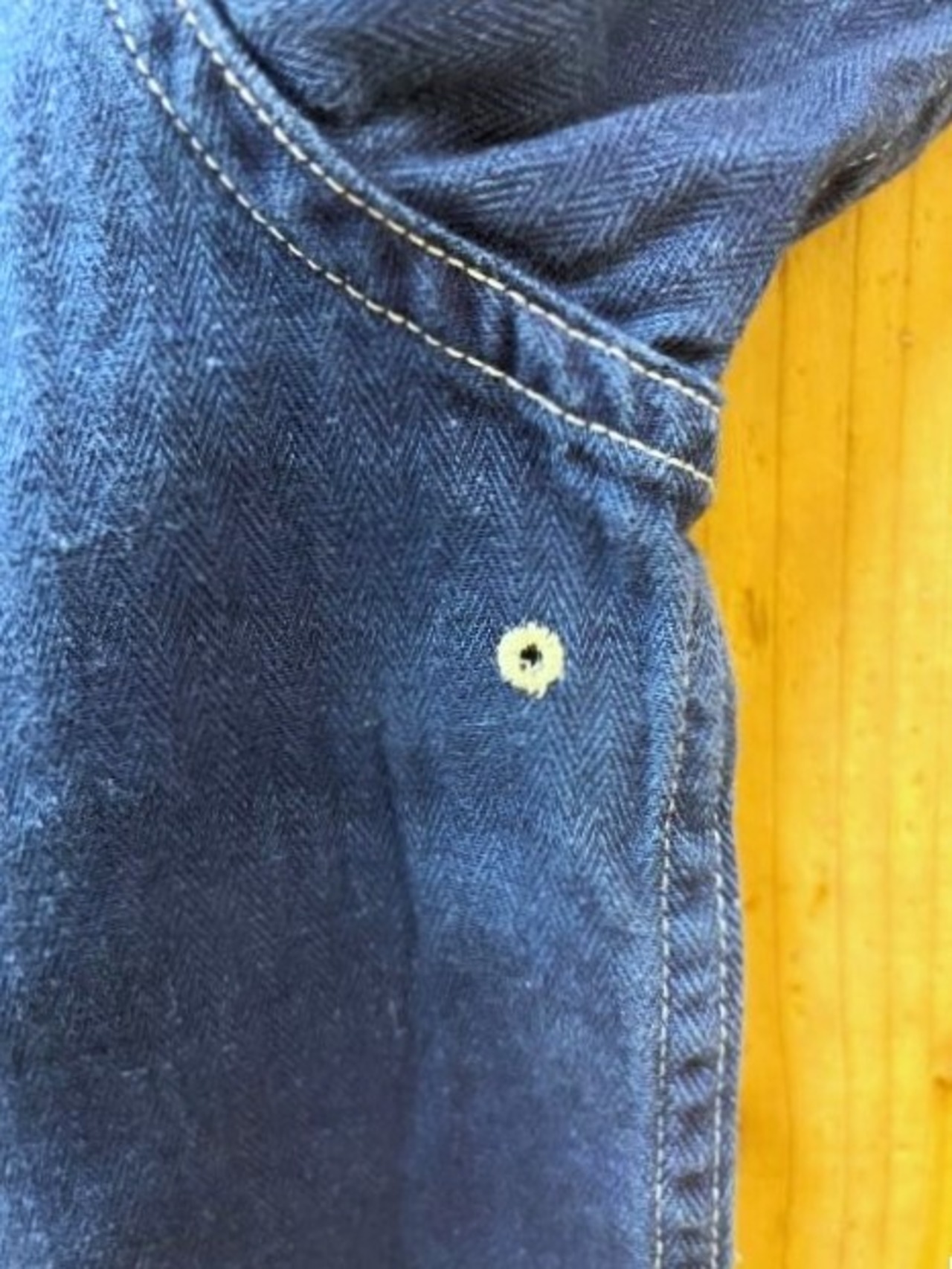 インディゴ染めのヘリンボーン織ですので、着るたび・洗うたびにその表面の変化を楽しんでいただけます。