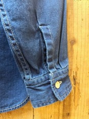 遠目にはデニムシャツですが、しかしよく見ると細かなヘリンボーン織になったインディゴカラー、しかもリネン55% コットン45%のサラッとした質感のお洒落なワークシャツです。