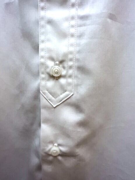 非常に目が細かくツヤのあるブロードクロス、P/O風ハーフブラケットのバンドカラーシャツです。