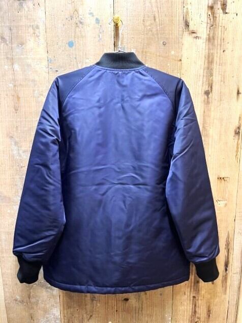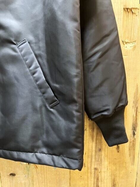 適度な光沢のサテン素材で、ネックと袖口にボディと同色のリブを付けたベーシックなスタジャンです。