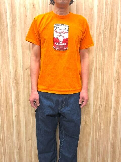 当店のオリジナルキャラ Peach Headsより、“ピーチ缶”Tシャツです。